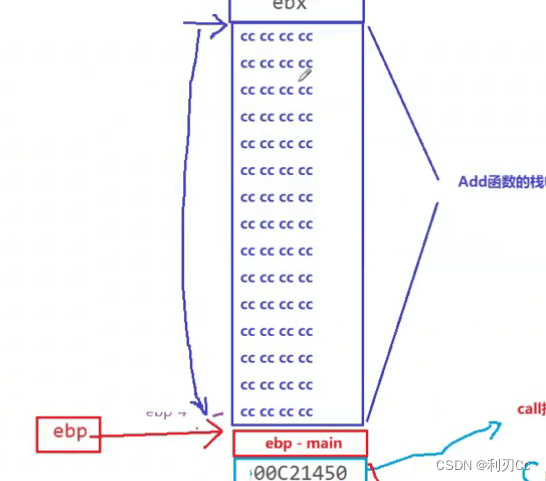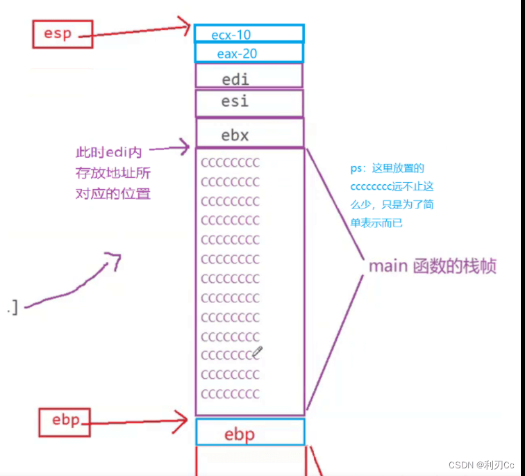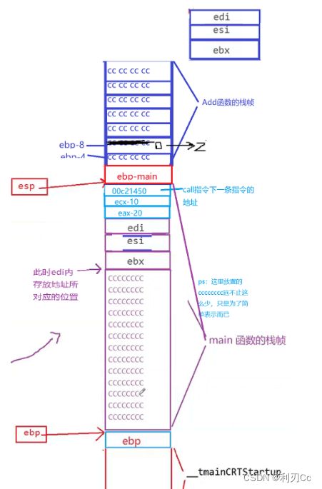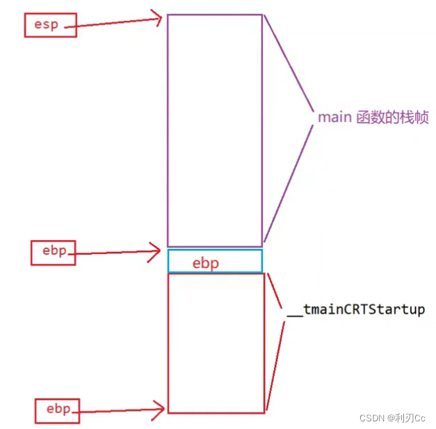 通过我们上述介绍的ebp和esp,我们把他们添加上去后的效果则为: