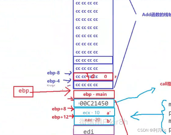 首先ebp-8也就是z放到eax,这样子就防止销毁add后数据也没了。