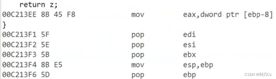 然后就是edi、esi、ebx的pop,然后把esp移到ebp的位置,最后弹出ebp。