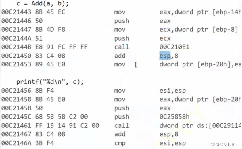 前几步的操作是为了给add函数开辟空间,这和开辟main函数是一样的,所以这里略过: