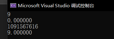一般情况下我们都会认为*pnum打印的就是n的值,只不过是以浮点型打印出来,所以是9.000000啊,然后下面的n又因为*pnum的修改,加之因为%d输出,所以还是9啊,但是结果不是,打印出来的结果如下图所示: