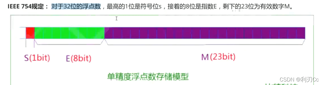 IEEE 754规定对于任意一个浮点数V都可以表示成V=(-1)^s * M *2^E,那我们是不是只要知道S、M、E三个值就可以确定一个浮点数?事实上,c语言内存存储浮点数时,也确实是只存储S、和指数E有关的一个值、和M有关的一个值(注意,这里不是直接存E、M) 详情如下: