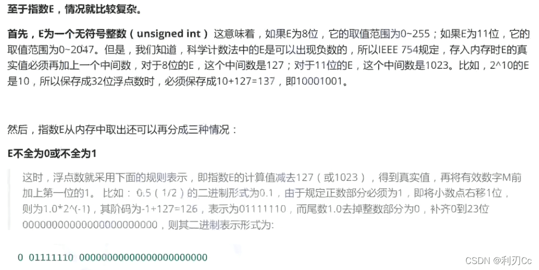 2.按照上面的方法,把n的补码分解后发现它的E为全0,所以相当于一个无穷小的数字,所以此时*p为0.000000……
