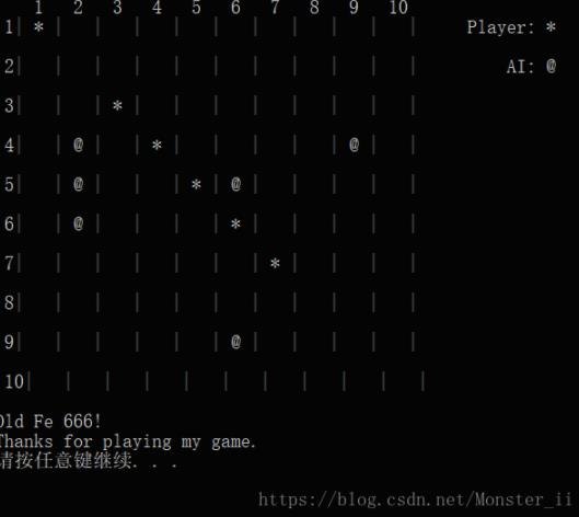 这是一个用C语言实现的控制台小游戏—-五子棋,棋盘大小和获胜棋子数目是用宏定义的,可以自定义,所以可以轻松改为三子棋、六子棋等等。此游戏设定为人机对战(PVE),电脑走棋是随机的。