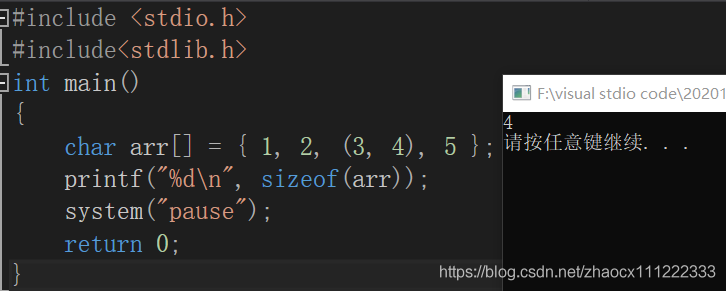 //结果为5,因为为字符型表示,并不含有\0(仅仅字符串有\0)