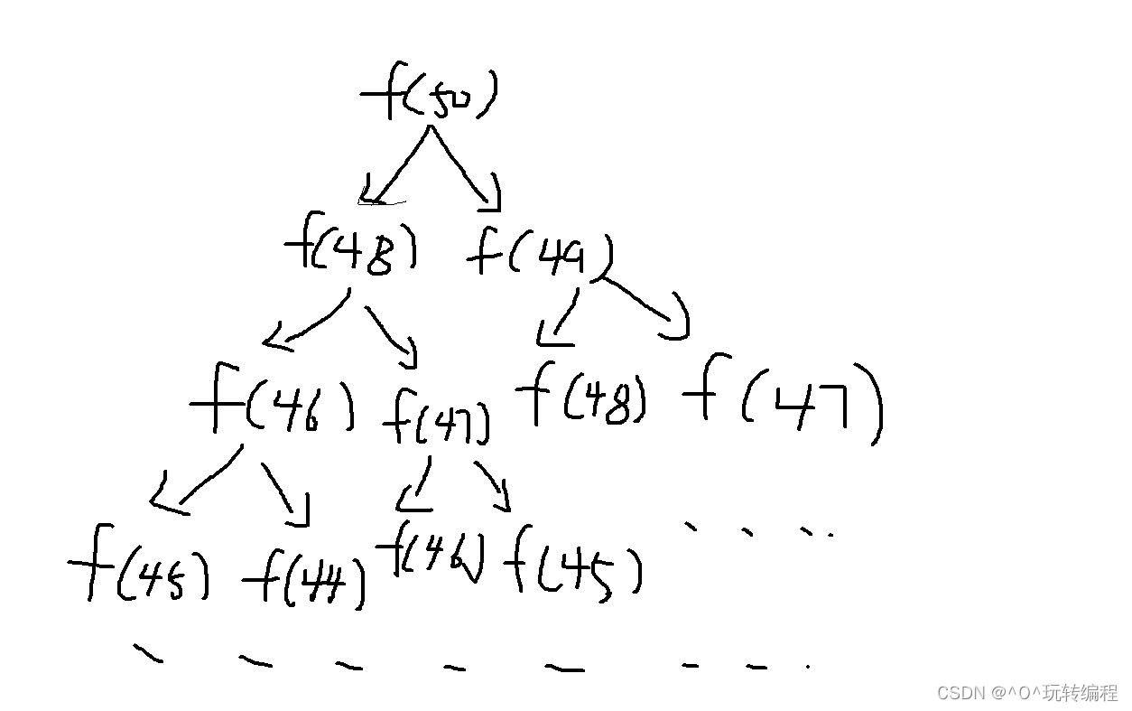 我们为了求f(50)就要知道f(49)于f(48)以此类推,将会导致出现许多不必要的调用。