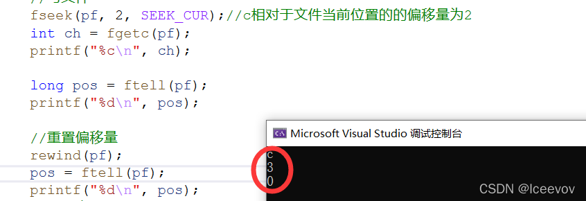 fseek(pf, 2, SEEK_CUR);//c相对于文件当前位置的的偏移量为2