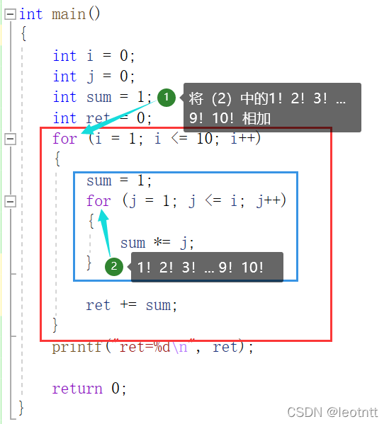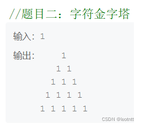 }特别注意:for循环嵌套个for循环这类题,如果俩个for循环同时看,对于初学的同学来说很容易弄混淆,从而看不懂代码含义。有个好的方法是:先不看最外边的for循环,先看内部的for循环,很便于理解,先看 for(2) 后再看 for(1)。//就这一句话,但是真的好用 上题上题: