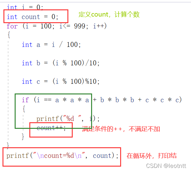 c.如何计算得出有多少个这样的数呢?在这里需要定义一个变量count专门来计算个数。如下