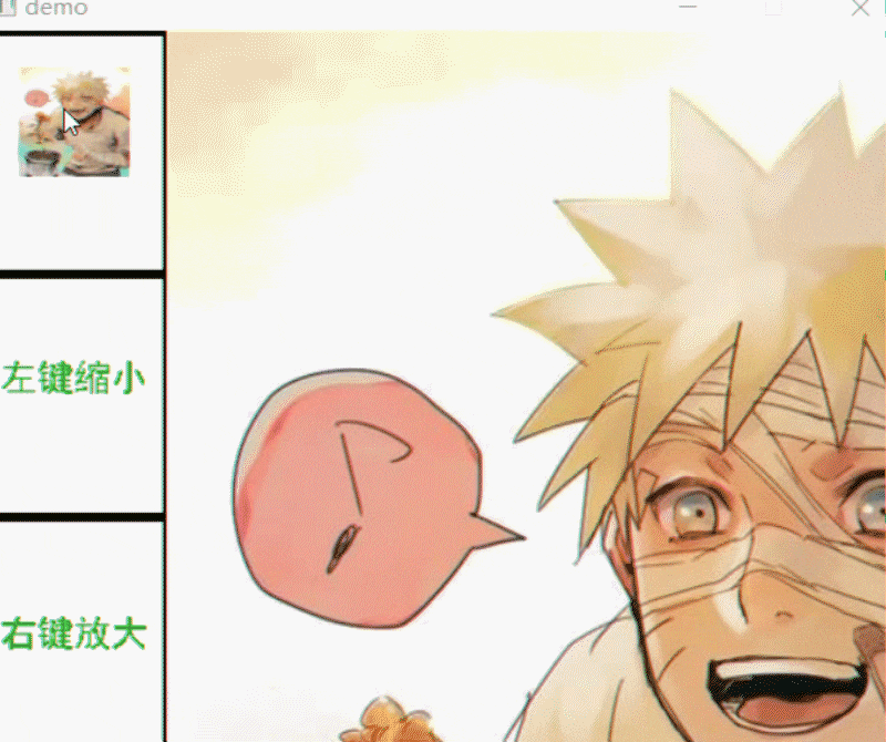 鼠标按小图,左键图片缩小,右键图片放大。