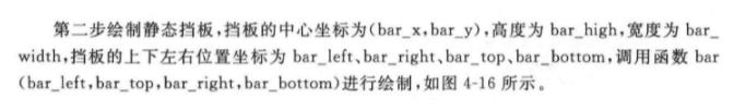bar(bar_left,bar_top,bar_right,bar_bottom);//绘制黑色,黑色填充的挡板
