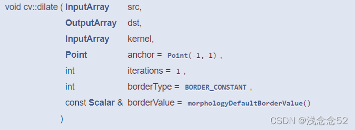 当我们用dilate 函数时一般情况下使用前三个参数就可以了,后面参数都有其默认值,可以视情况改变