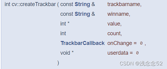 - onChange 指针指向每次滑块改变位置时调用的函数。 这个函数的原型应该是void Foo(int,void*); 其中第一个参数是轨迹条位置,第二个参数是用户数据(见下一个参数)。 如果回调函数是NULL指针,则不调用回调函数,只更新值。