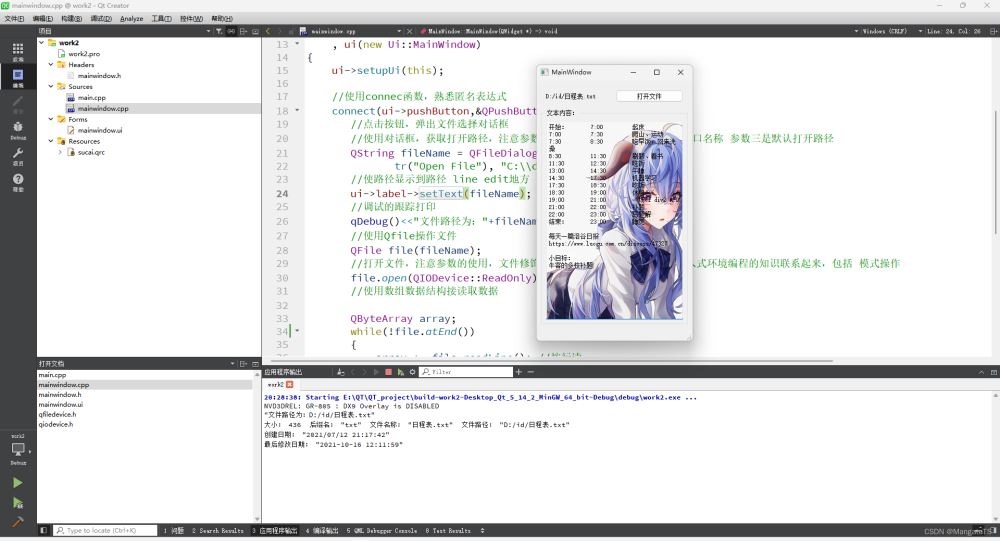 QT自带了一个文件操作的类->QFile ,实验中也是着重 QFile 的操作
