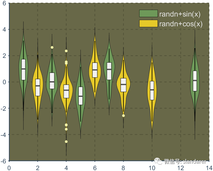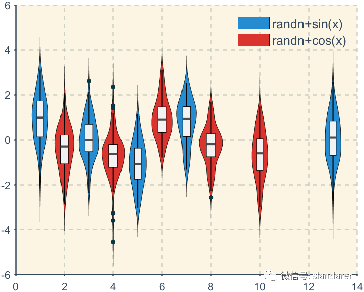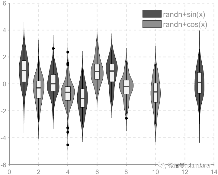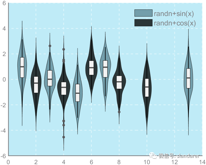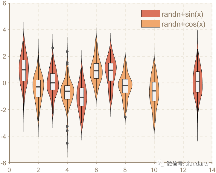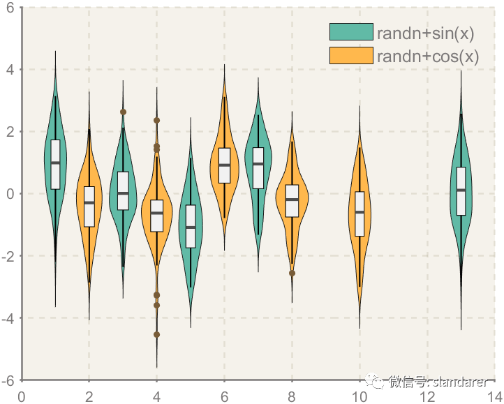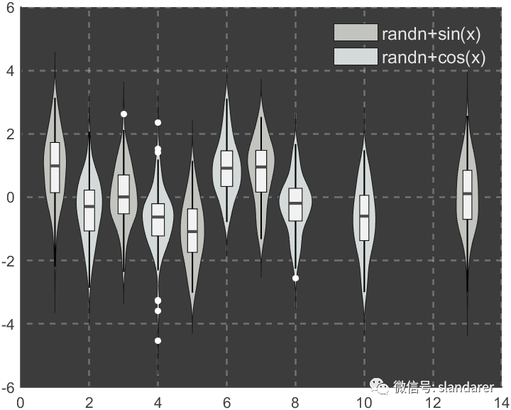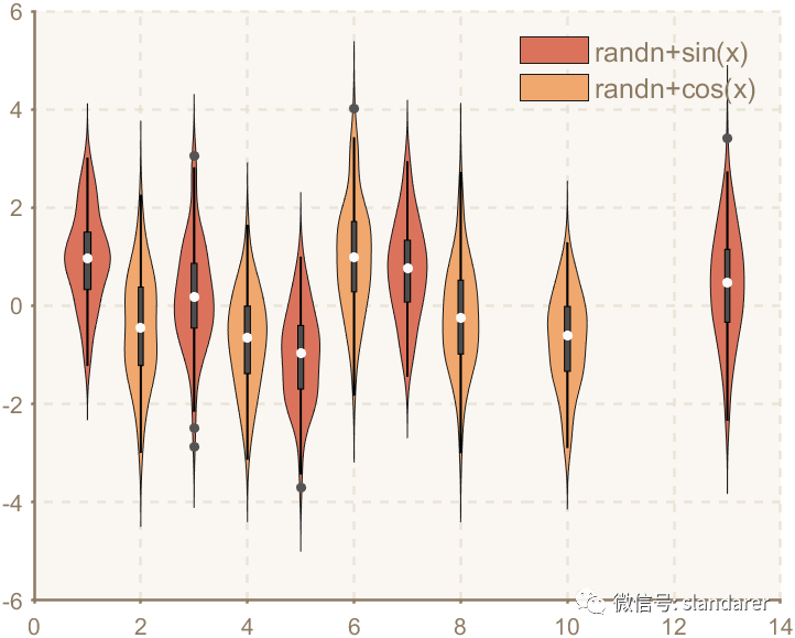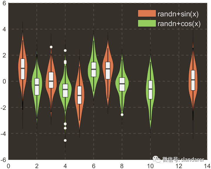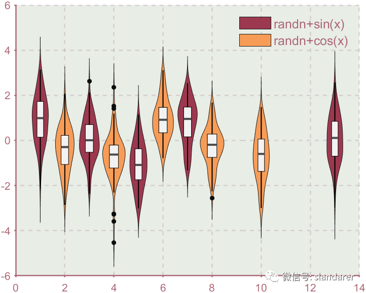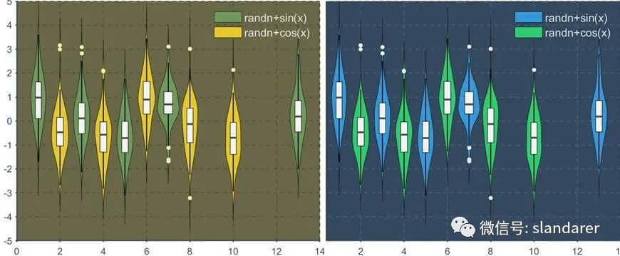 ggThemeViolin(gca,[Hdl1,Hdl2],'dust');则图像会被修饰:
