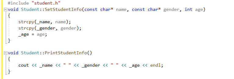 void SetStudentInfo(const char* name, const char* gender, int age);