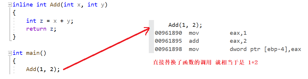 如果在Add函数前增加 inline 关键字将其改成内联函数,在编译期间编译器会用函数体替换函数的调用。 查看方式: