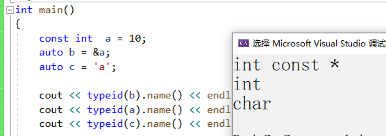 cout << typeid(c).name() << endl;//typeid可以打印一个变量的类型