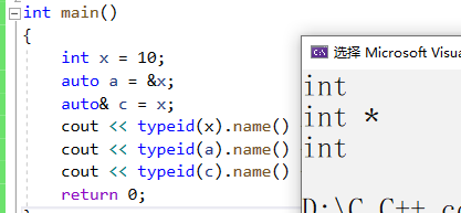cout << typeid(x).name() << endl;//typeid可以打印一个变量的类型