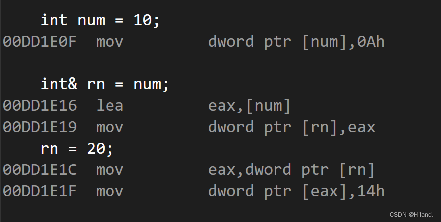 }我们来看下引用和指针的汇编代码对比: