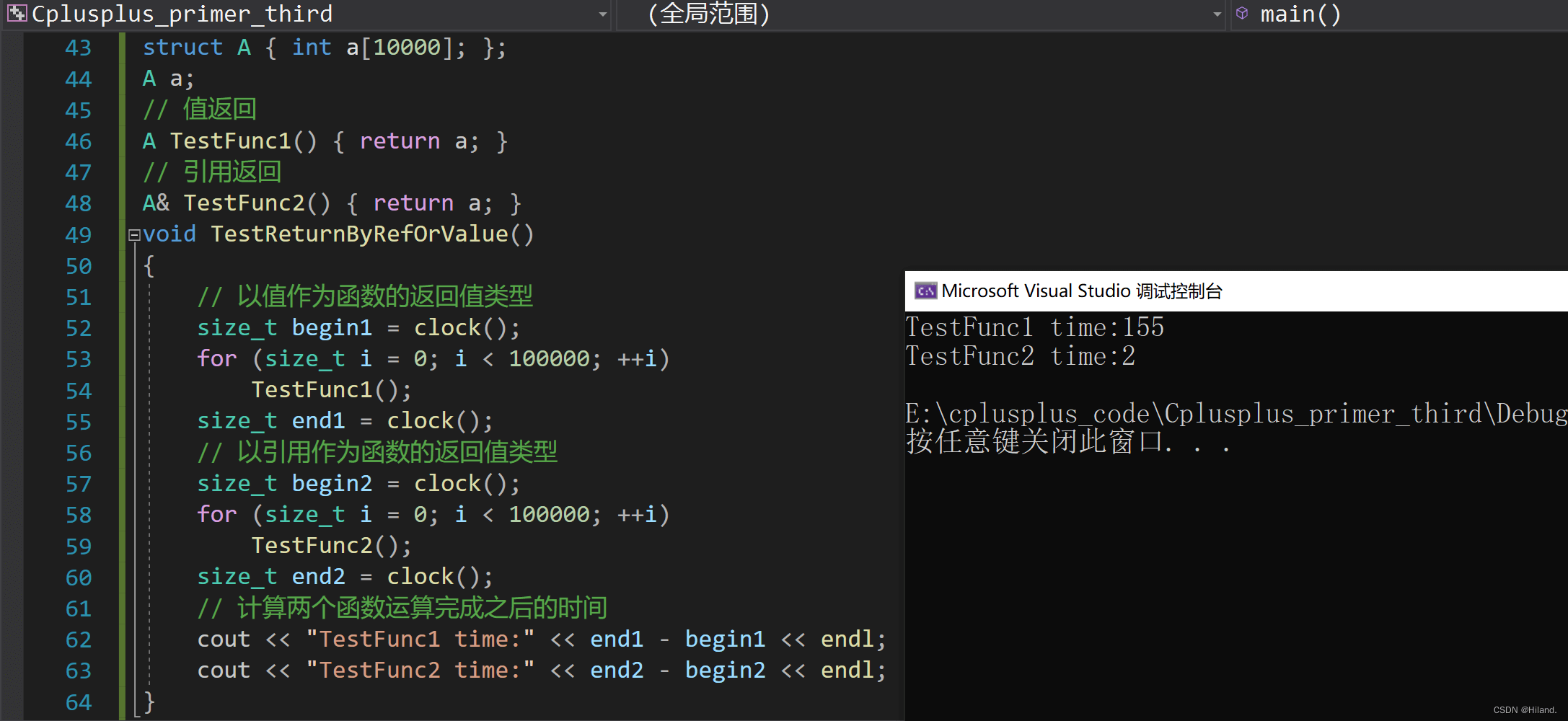2. 值和引用的作为返回值类型的性能比较
