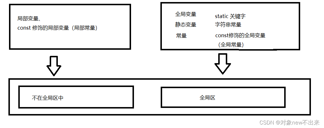 在程序编译后,生成了可执行程序.exe,未执行程序前分为两个区域为代码区和全局区