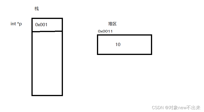 //指针 *p实质上也是栈区数据,指针保存的数据放到堆区