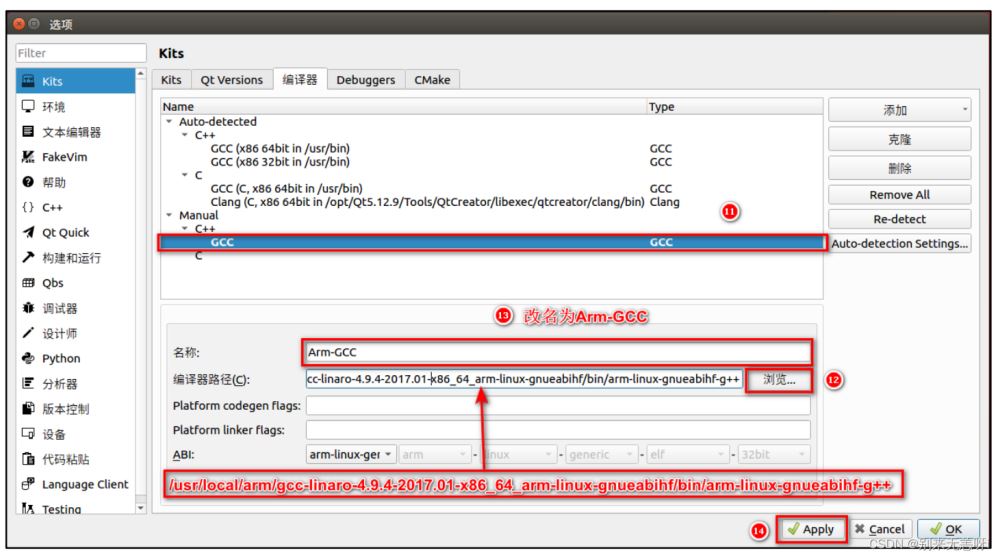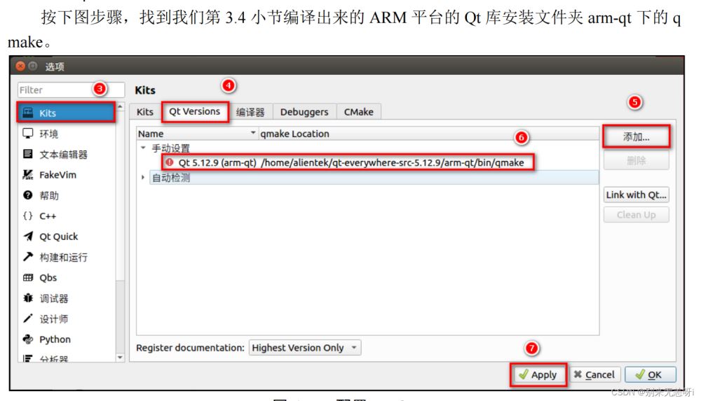 主要配置你编译qt源码使用的交叉工具链(上面装的那个工具链)和一些配置信息。