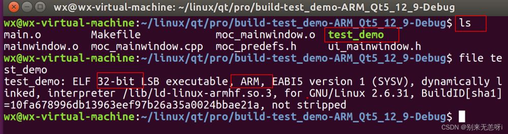 进入到build-test_demo-ARM_Qt5_12_9-Debug目录里面:
