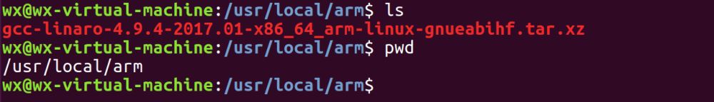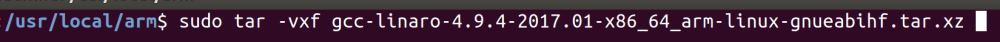 1、将交叉编译工具包(gcc-linaro-4.9.4-2017.01-x86_64_arm-linux-gnueabihf.tar.xz)拷贝到ubuntu的/usr/local/arm/目录下。