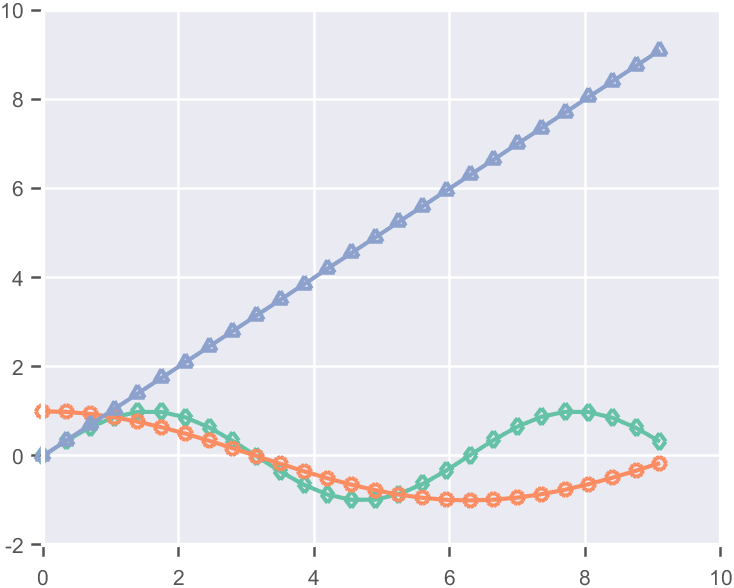 plot(t,sin(t),'Marker','d','LineWidth',2,'Color',[102,194,166]./255)