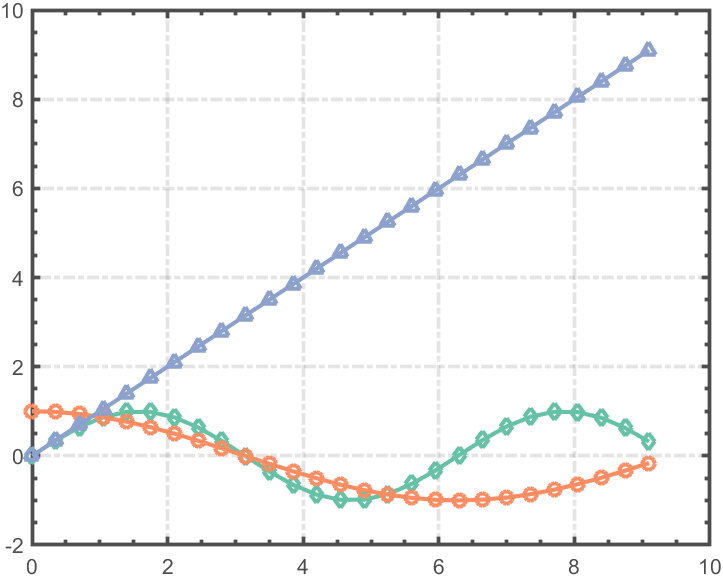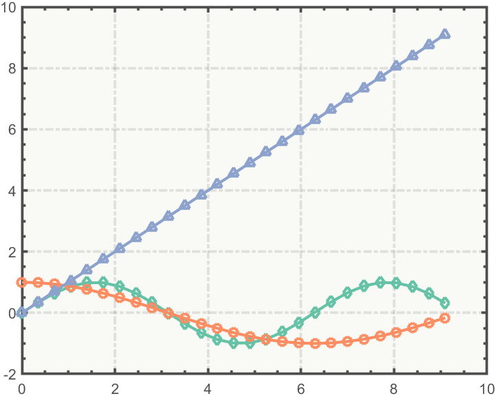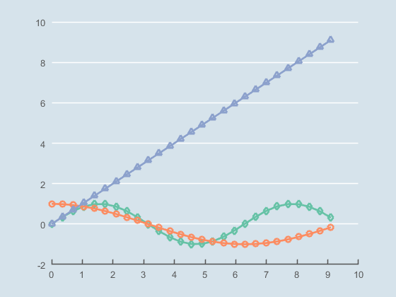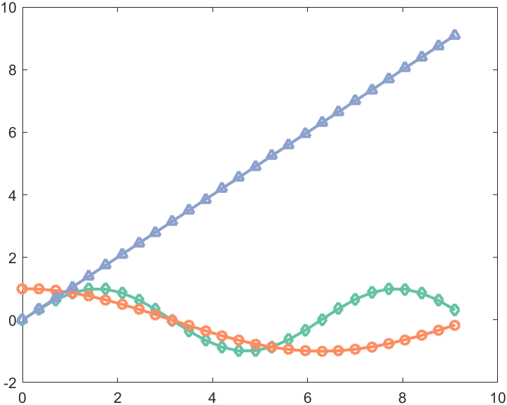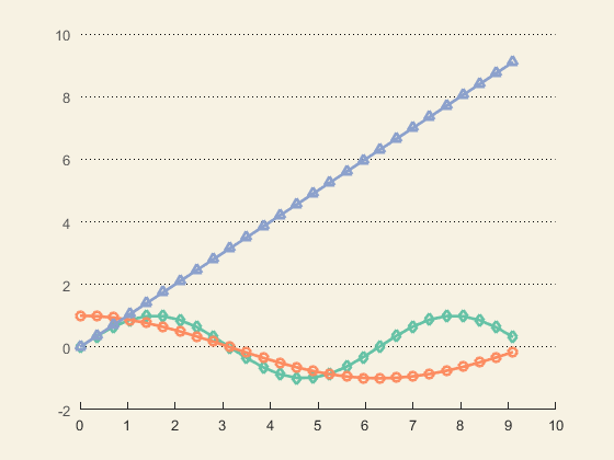 plot(t,cos(t./2),'Marker','o','LineWidth',2,'Color',[252,140,97]./255)