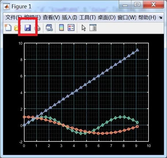 想要连figure窗口的背景颜色一起保存需要设置figure窗口的InvertHardcopy属性为'off',本函数已经设置好了这个属性,因此直接点击如下按钮保存即可: