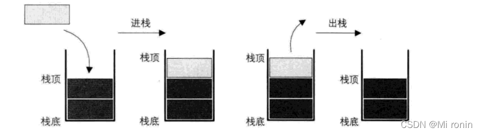- 栈的插入操作,叫做进栈;可以理解为子弹入弹夹。