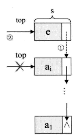 s->next=s->top;//把当前的栈顶元素赋值给新结点的直接后继.