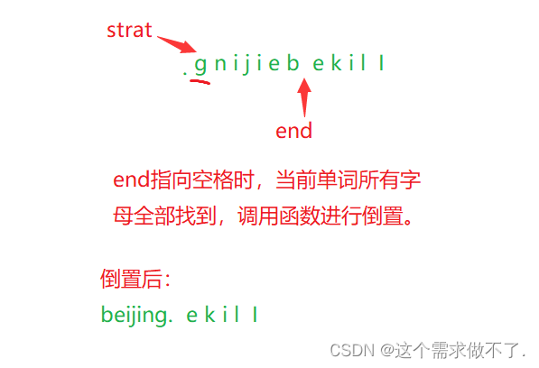 先定义一个 strat 指向字符串的第一个单词,在定义一个 end 指向 strat 所指向的位置,也就是字符串的第一个单词的地址。、
