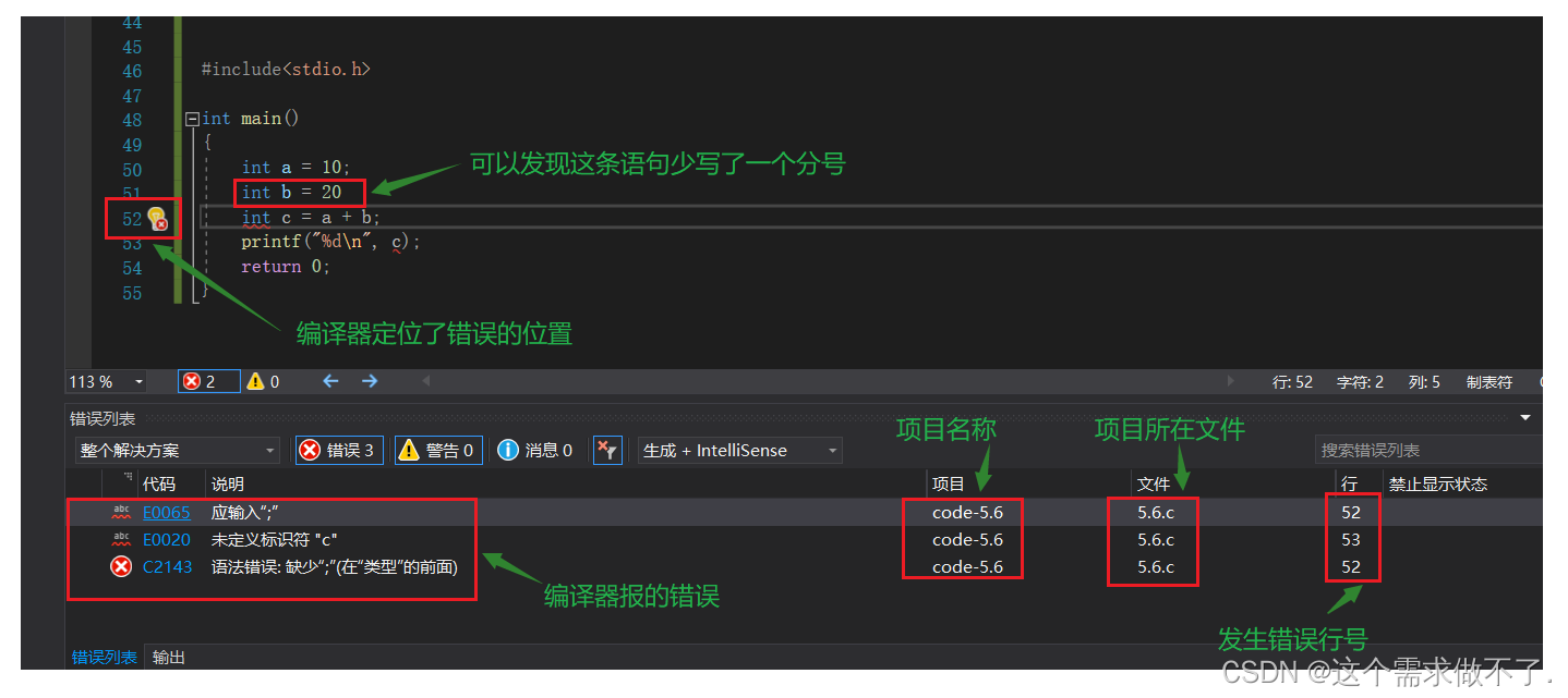 这个分栏是对于使用C语言编程过程中可能会出现的一些错误而进行的说明,更多的错误示例将会在后面的内容里进行演示。希望这个分栏的内容可以帮助刚学编程的小白少走一些弯路,以及吸取更多的编码经验