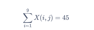 首先我们先尝试如果只满足行、列、3x3块加和均为45的等式约束是否有效。即约束为: