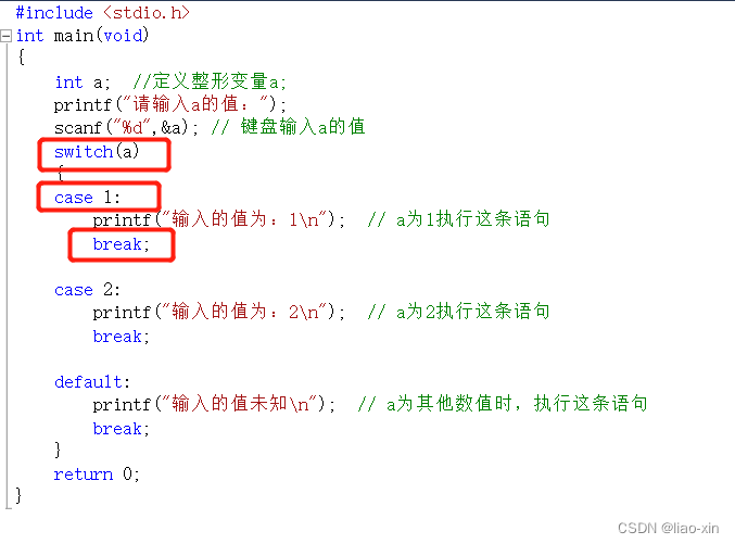 printf("输入的值未知\n"); // a为其他数值时,执行这条语句