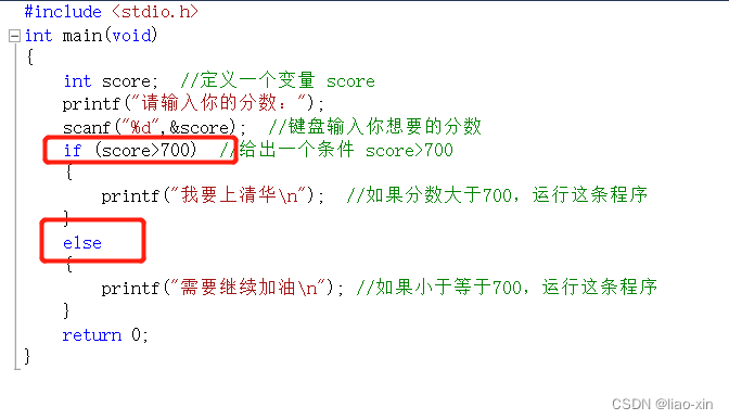 if (score>700) //给出一个条件 score>700