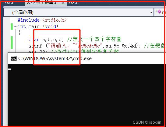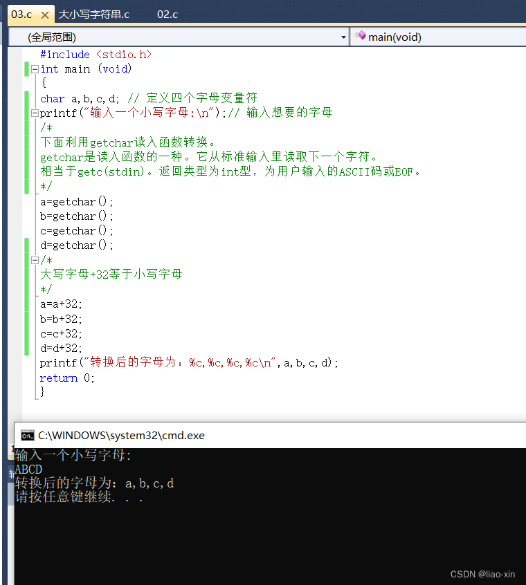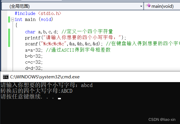 3、小写字母转换大写字母“-32”,大写字母转换小写字母“+32”