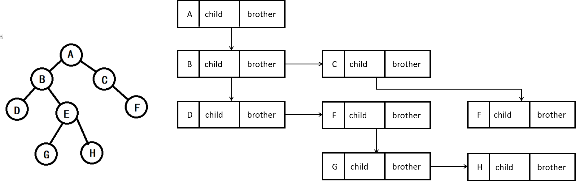 表示方式:实际中树有很多种表示方式, 如:双亲表示法,孩子表示法、孩子兄弟表示法等等。我们这里就简单的了解其中最常用的孩子兄弟表示法。