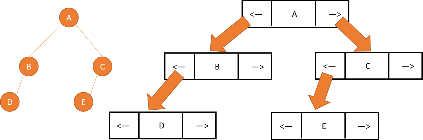 二叉树每个结点最多有两个孩子,所以为它分配一个数据域和两个指针域是比较自然的想法,我们称这样的链表叫做二叉链表。结点结构如图: