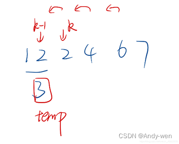 while (a[k] < temp && k < n) {//比较第三个和前两个的和,若第三个比前两个要小