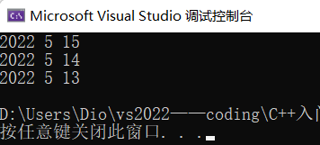 那数据是如何对应上的呢?换个问题就是 print 每次是怎么样对应上 d1,d2,d3的,其实访问成员变量年月日,并不是在访问 private 里的年月日,private 里只是声明并不存在空间的开辟,访问但是同一个类里面的 init 函数从而访问到成员变量。