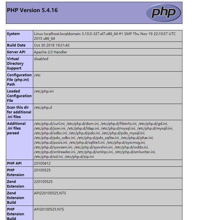 在浏览器中访问http://ip地址/info.php 例如:http://10.0.0.5/info.php即可看到php信息。