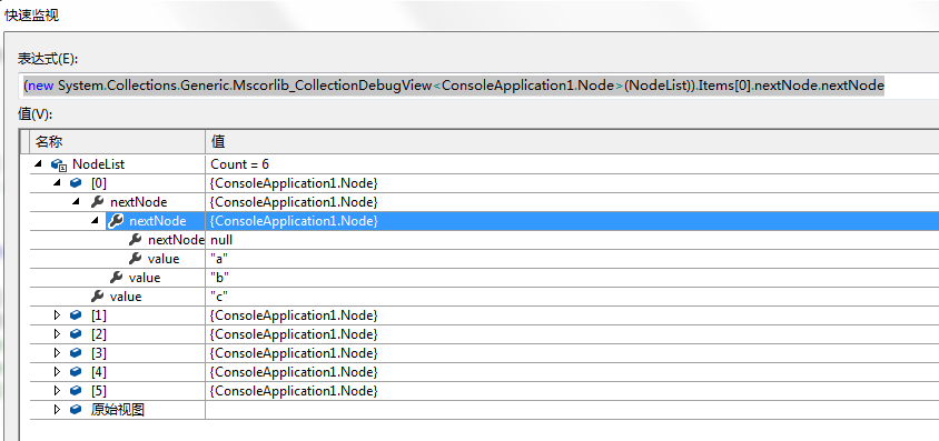 }这样,我们执行了Permutation方法后,就将结果保存到链表中了。用的时候,我们只要遍历NodeList就可以了。如图: