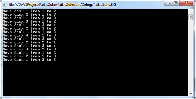 提示:可将圆盘临时置于B杆,也可将从A杆移出的圆盘重新移回A杆,但都必须遵循上述两条规则。