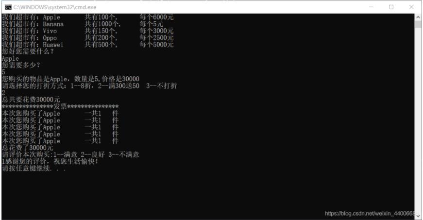 接下来与用户的交互重中之重,包含了计算用户货物的钱以及计算打折后的钱等。