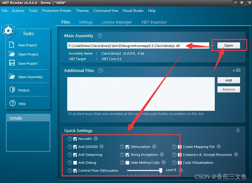单击 Main Assembly 右边的 Open,选择要加密的软件文件,exe 或 dll 都可以。